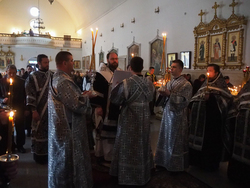 Его Преосвященству сослужили: архимандрит Пётр (Путиёв), протоиерей Андрей Борисенко, протоиерей Андрей Кунавин, иерей Георгий Дворовой, иерей Андрей Андреев, иерей Владимир Кусаинов.