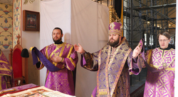 По завершении литургии епископ Даниил обратился к прихожанам с архипастырским словом, в котором разъяснил смысл установления Крестопоклонной недели во время прохождения Великого поста и духовном значении выноса Распятия для поклонения верующих. «Крестопоклонная неделя установлена для того, чтобы мы укрепились со Христом животворящей благодатью, которая исходит от оружия победы над адом, смертью и грехом». В своем слове владыка Даниил подчеркнул необходимость благоговейного нанесения на себя крестного знамения, что является в первую очередь исповеданием Распятого и Воскресшего Христа. «Вся наша жизнь с Крестом Господним и увенчается она посмертно также крестом. Крест – это не печаль, это не уныние. Крест – это великая радость, потому что через это Древо послушания Спасителя нашего мы обрели спасение».