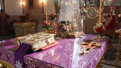 Крест Господень будет находиться в центре храма на аналое до пятницы следующей недели. В те дни, когда Крест вынесен из алтаря в центр церковного зала священники не дают крест для целования после службы. Следует подходить к Животворящему Кресту.