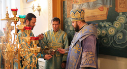 Его Преосвященству сослужили: митрофорный протоиерей Валентин Никонов, архимандрит Пётр (Путиёв), иерей Георгий Дворовой.