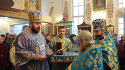По завершении литургии епископ Даниил поздравил митрофорного протоиерея Валентина Никонова с получением награды - второго наперсного креста. Так же владыка отметил, что именно в этот день 45 лет назад, отца Валентина направили служить в Киргизию.