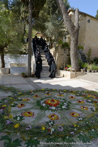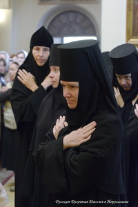 13 апреля в соборе Всех святых в земле Русской просиявших Горненской обители митрополит Еленопольский Иоаким в сослужении епископа Бишкекского и Кыргызстанского Даниила и епископа Яранского и Лузского Паисия, Начальника Русской Духовной Миссии архимандрита Александра (Елисова), духовенства Иерусалимского Патриархата, Русской Духовной Миссии и паломников в священном сане возглавил служение Божественной литургии.