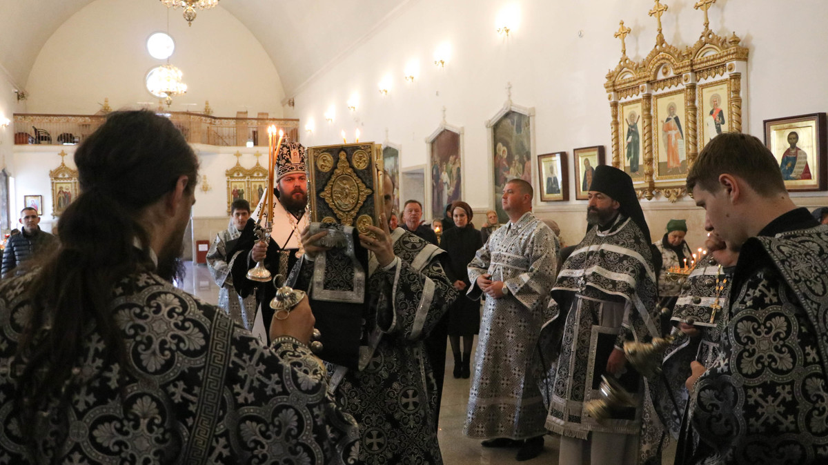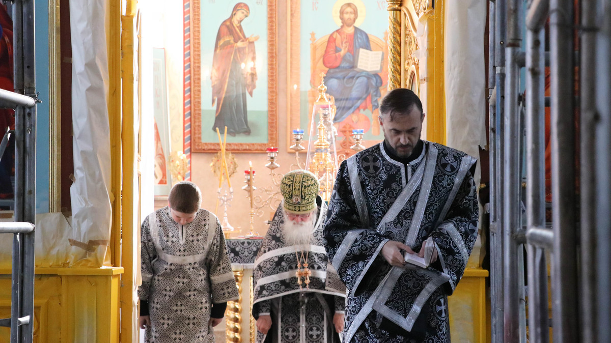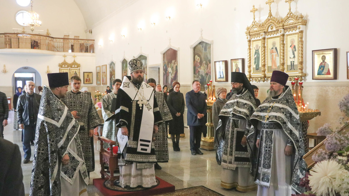 Его Преосвященству сослужили: протоиерей Валентин Никонов, архимандрит Пётр (Путиёв), протоиерей Андрей Борисенко, иерей Георгий Дворовой.