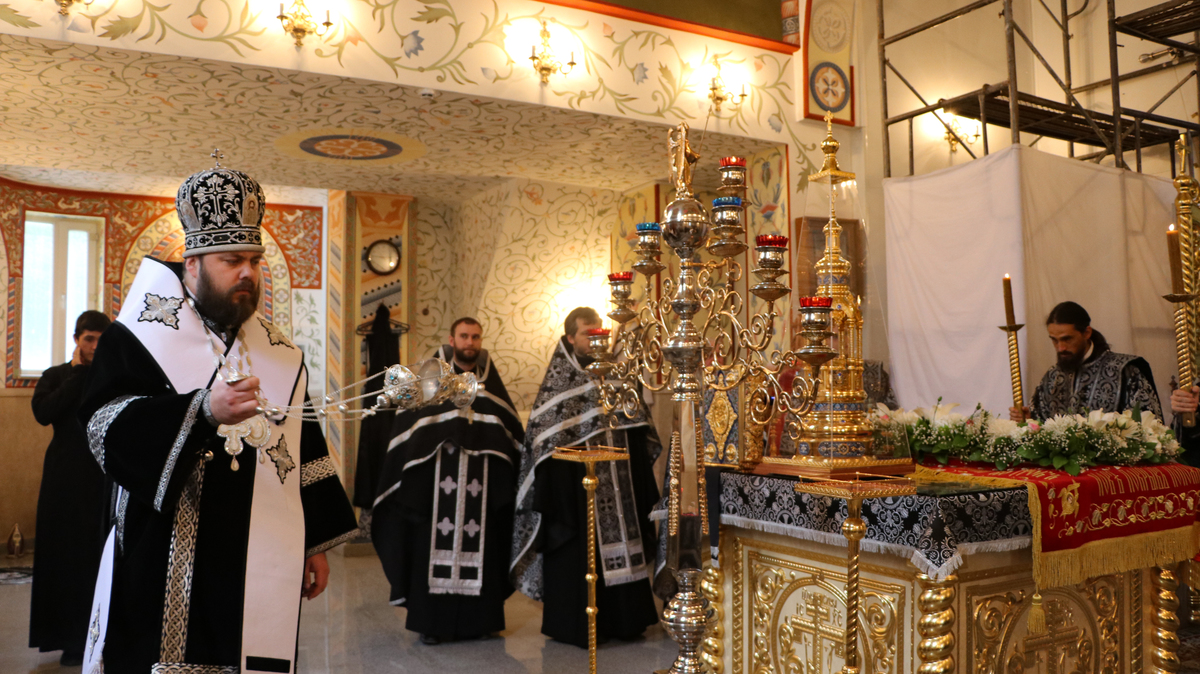 В конце вечерни Великой пятницы был совершен вынос Плащаницы Христовой с изображением положения Его во гроб. Далее в своем архипастырском слове Его Преосвященство обратил внимание прихожан на то, что в Великую пятницу совершились и воспоминаются Церковью святые, спасительные и страшные страдания и смерть Господа Иисуса Христа, ради нас волею Им претерпленные и прочитал текст с медицинским освидетельствованием, раскрывающим подробности казни на кресте.