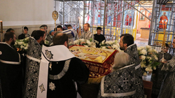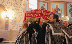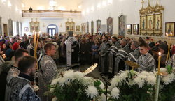 По завершении был прочитан Канон о распятии Господа и «На плач Пресвятой Богородицы». После отпуста вечернего богослужения прихожане приложились к Плащанице.
