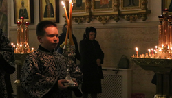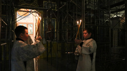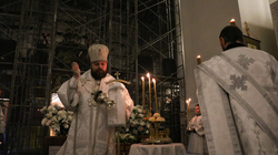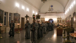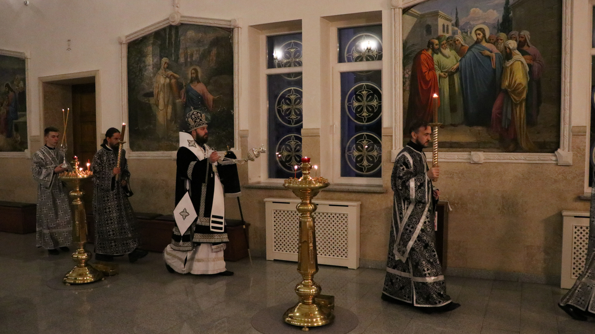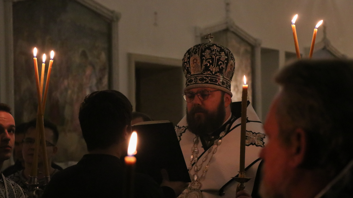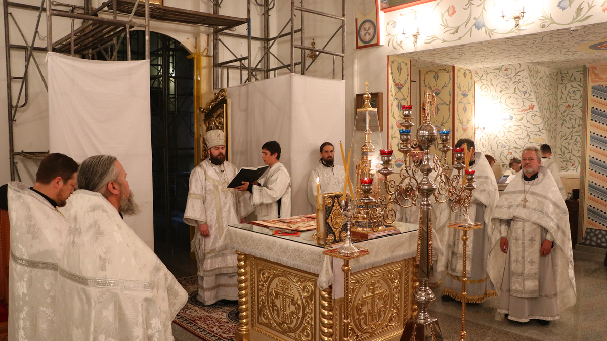 Затем были прочитаны Часы и Изобразительны. Поздней ночью, в наступившую Великую Субботу Его Преосвященство совершил вечерню и Божественную литургию святителя Василия Великого.