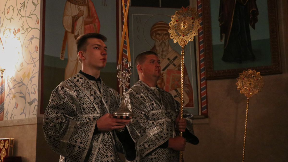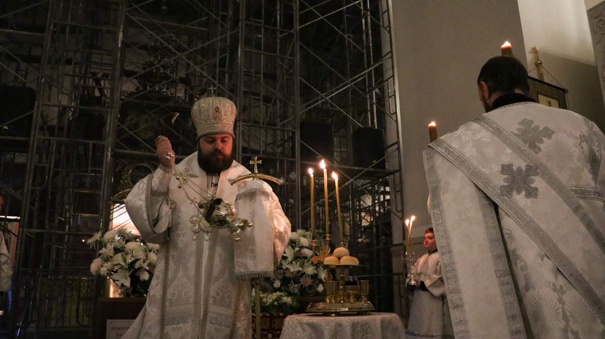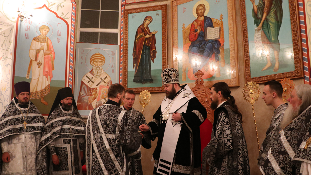 Его Преосвященству сослужили: протоиерей Валентин Никонов, архимандрит Пётр (Путиёв), протоиерей Андрей Кунавин, иерей Георгий Дворовой, иерей Владимир Кусаинов, иерей Андрей Андреев.