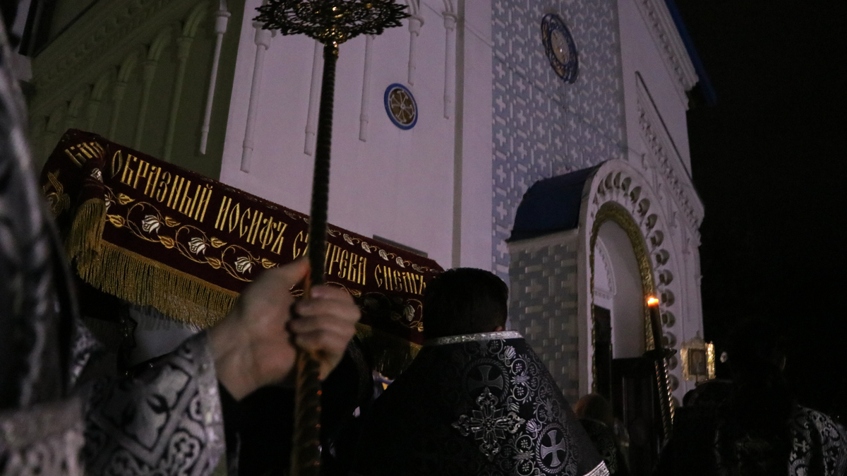 В ночь с 26 на 27 апреля 2019 года, в канун Великой Субботы, епископ Бишкекский и Кыргызстанский Даниил совершил утреню с чином погребения Господа нашего Иисуса Христа в Свято-Воскресенском кафедральном соборе.