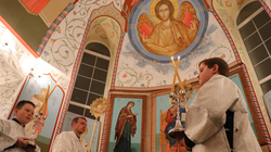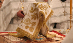 По окончании Божественной литургии было совершено благословение хлебов и вина, как это предписывает богослужебный Устав Великой Субботы.