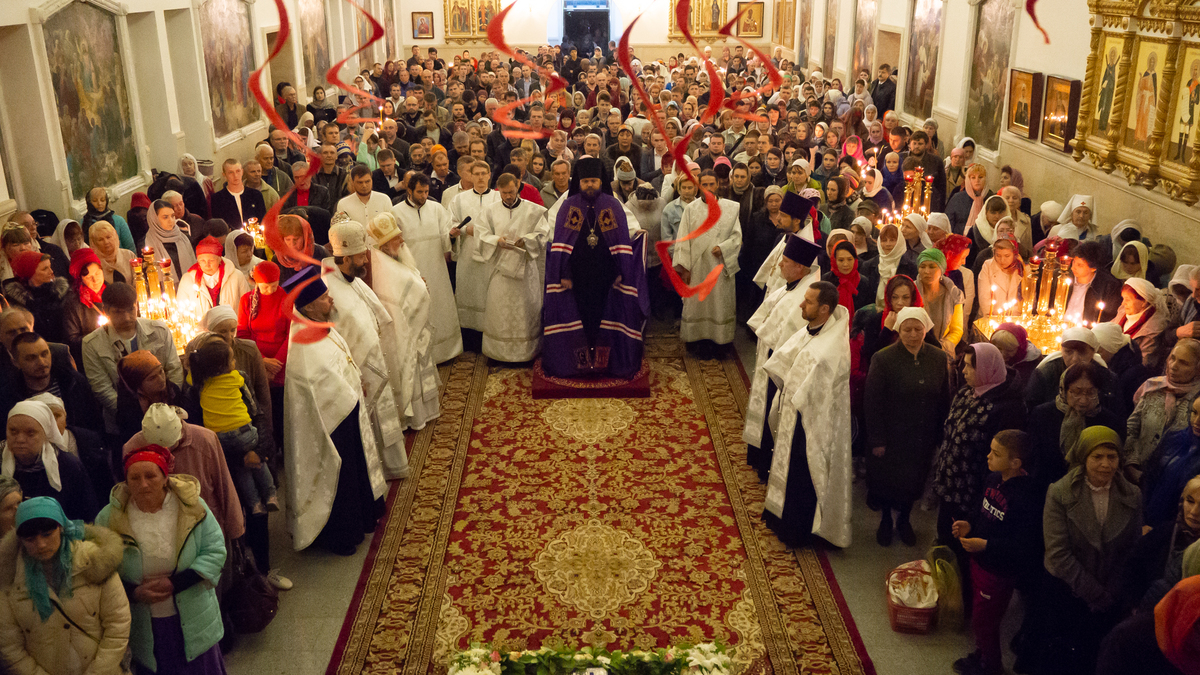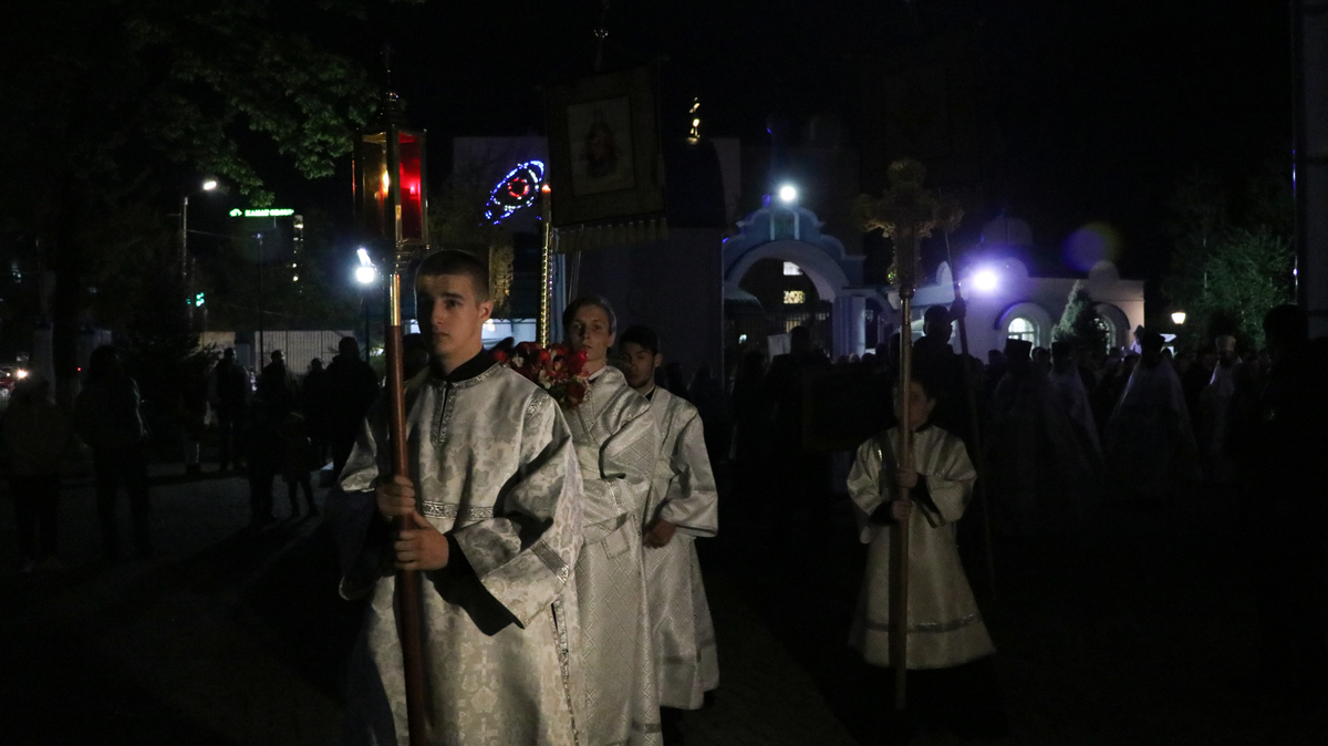 По традиции, под пение стихиры «Воскресение Твое, Христе Спасе» вокруг Свято-Воскресенского собора был совершен крестный ход, и началась Пасхальная Утреня, в конце которой было прочитано «Слово огласительное святителя Иоанна Златоуста на Святую Пасху».