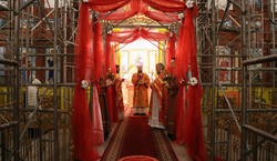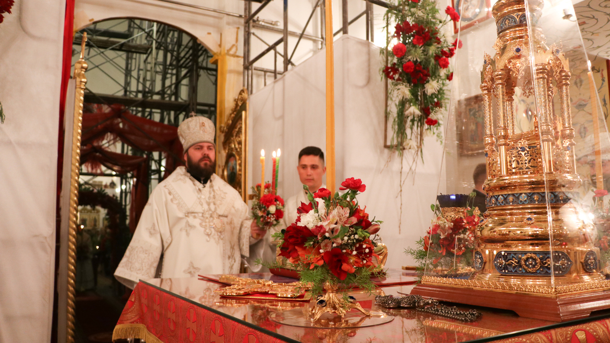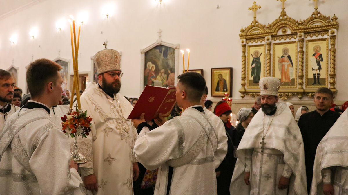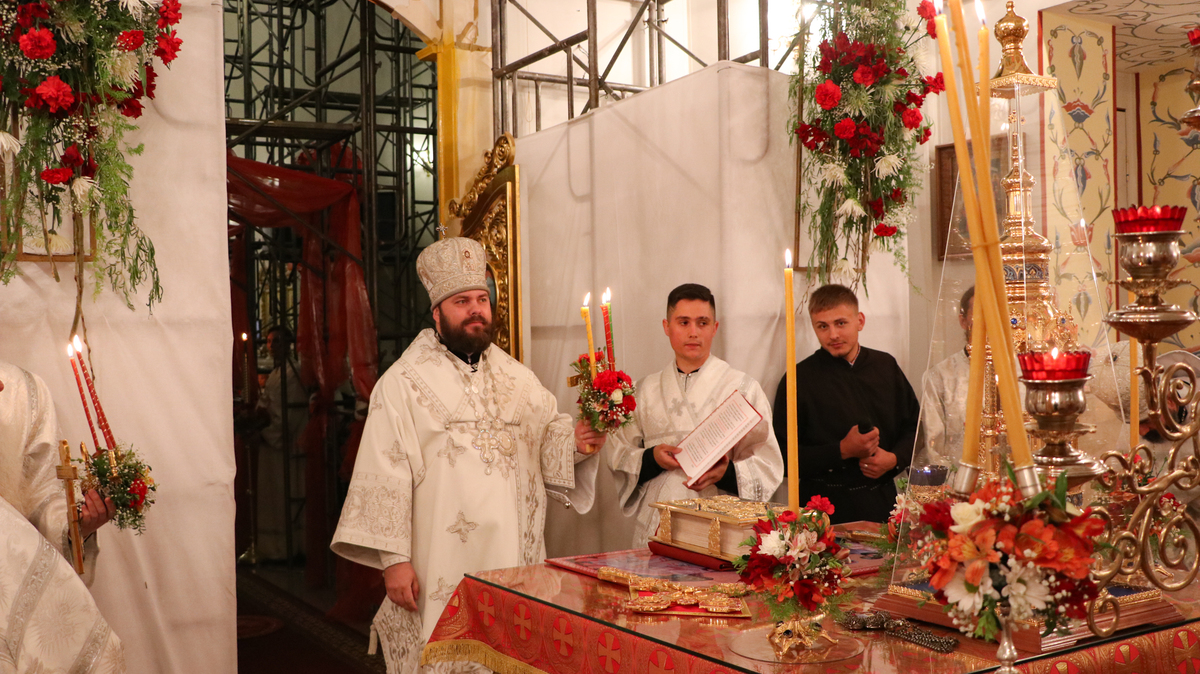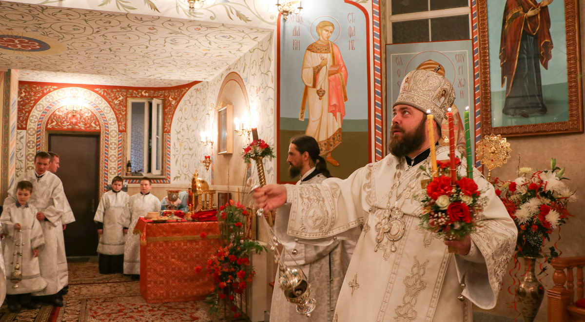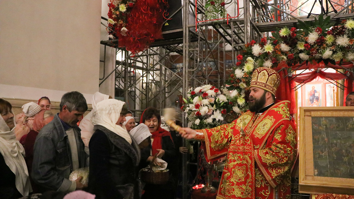 По окончании Божественной литургии Его Преосвященство поздравил прихожан и преподал всем архиерейское благословение.