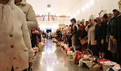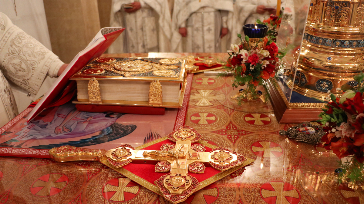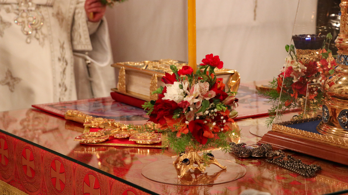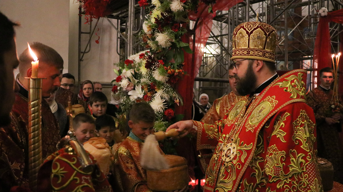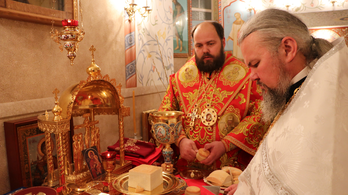 После заамвонной молитвы Его Преосвященство освятил артос.