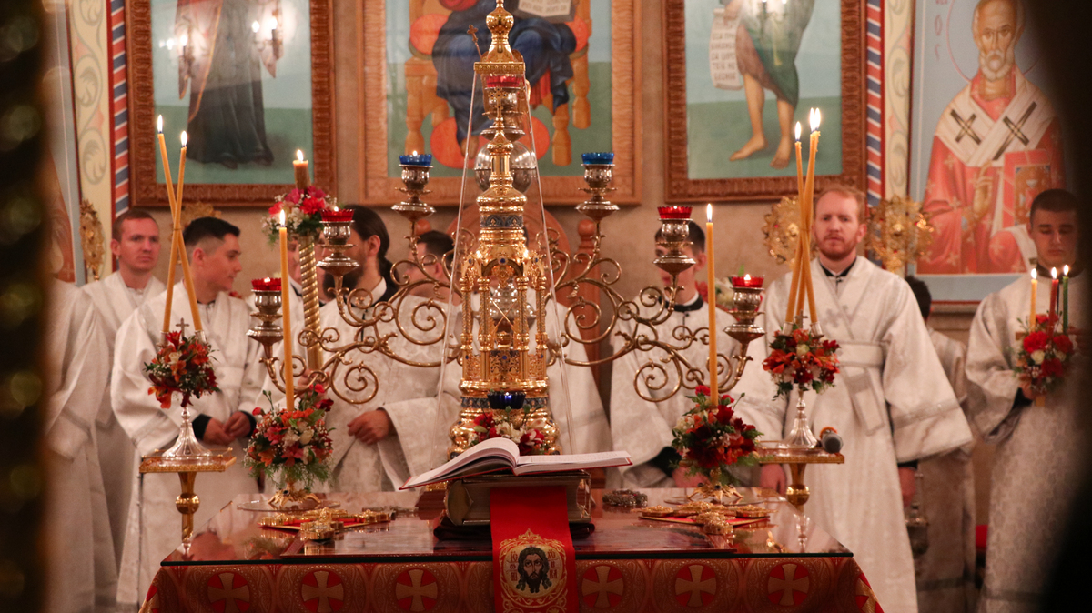Пасхальное послание Святейшего Кирилла Патриарха Московского и Всея Руси архипастырям, пастырям, монашествующим и всем верным чадам Русской Православной Церкви огласил иерей Георгий Дворовой.