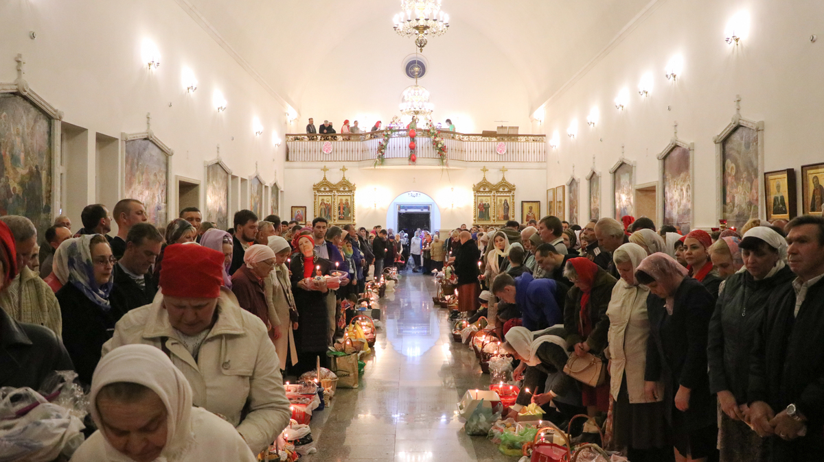 В ночь с 27 на 28 апреля 2019 года, Преосвященнейший Даниил, епископ Бишкекский и Кыргызстанский, в Свято-Воскресенском кафедральном соборе города Бишкека совершил Пасхальные богослужения – полунощницу, крестный ход, Пасхальную заутреню и Божественную литургию.