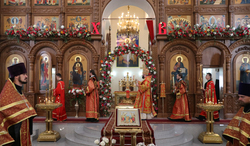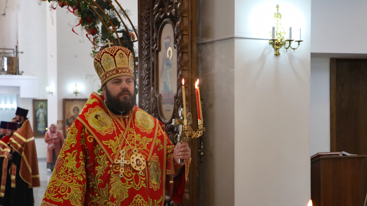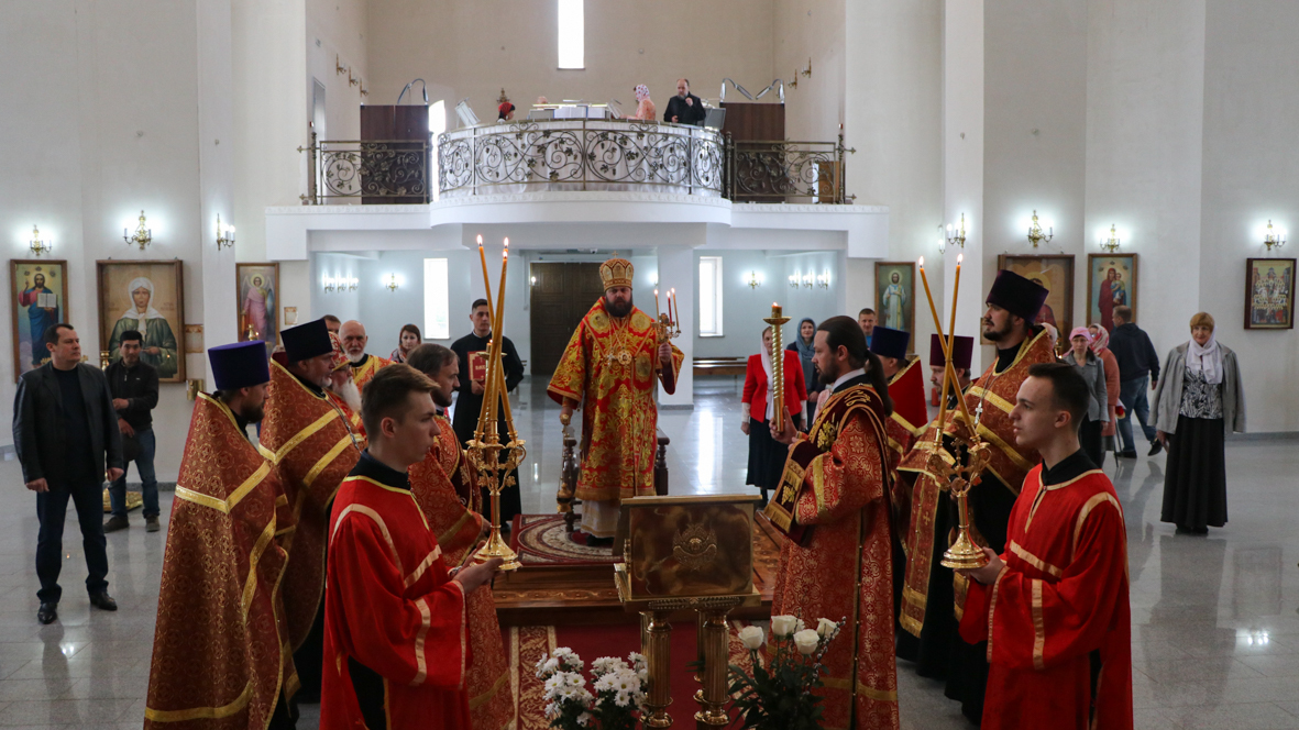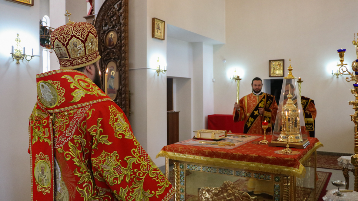 Его Преосвященству сослужили: протоиерей Валентин Никонов, протоиерей Алексей Сыромятников, протоиерей Алексей Зайцев, иерей Николай Пелых, иерей Александр Аношкин.