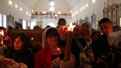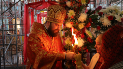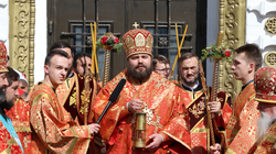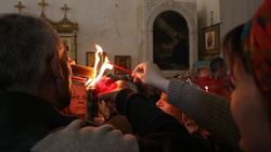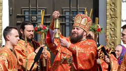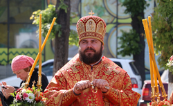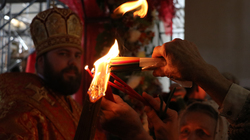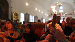 Сразу после торжественной встречи святыни владыка Даниил отслужил вечерню Понедельника Светлой седмицы, во время которой раздал Благодатный огонь прихожанам собора.