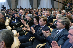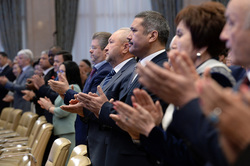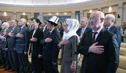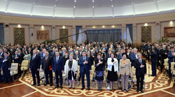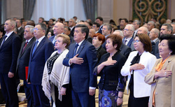 Открывая церемонию, Глава государства поздравил Ассамблею народа Кыргызстана с 25-летним юбилеем и обратился ко всем участникам с приветственным словом.