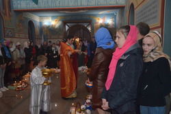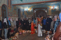 По окончанию Божественной Литургии, отец Евгений окропил всех прихожан святой водой, а также освятил принесенные ими пасху, куличи и пасхальные яйца.
