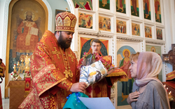 По завершении Божественной литургии епископ Даниил вручил Архиерейскую грамоту «за усердные труды во славу Святой Церкви и на благо Бишкекской и Кыргызстанской епархии» Тен Ирине Александровне, которая уже много лет помогает в ризной. Затем от всех православных христиан Кыргызстана Его Преосвященство преподнес в дар Свято-Успенскому Каприянскому мужскому монастырю в Молдове икону с частицей моще преподобного Ираклия Иссык-Кульского и в дар Храму Живоносного источника г. Милана в Италии частицу мощей преподобного. Обращаясь к священству Молдовы и Италии, владыка Даниил сказал: «Примите, пожалуйста, эти святыни как молитвенное напоминание о посещении нашей благословенной Кыргызстанской земли. И молитесь нашему святому – преподобному Ираклию Иссык-Кульскому, память которого празднуется 10 июня и 13 сентября».