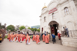 Накануне престольного дня архипастыри возглавили всенощное бдение, а в сам день праздника - Божественную литургию. Архиереям сослужили настоятели храмов Пятигорска, благочинные церковных округов, руководители епархиальных отделов, члены Епархиального Совета, старейшие клирики епархии.