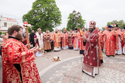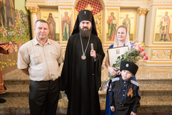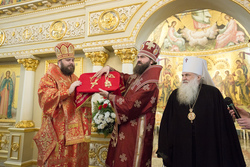 После Божественной литургии и уставного крестного хода митрополит Викентий передал благословение Святейшего Патриарха Московского и всея Руси Кирилла архиепископу Феофилакту, духовенству и верующим Пятигорской епархии. Митрополит Сергий приветствовал владыку Викентия и поздравил владыку Феофилакта от имени собратьев-архипастырей. Архиепископ Феофилакт поблагодарил гостей за радость соборной молитвы.