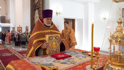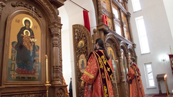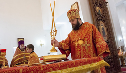 Его Преосвященству сослужили: протоиерей Алексей Зайцев, иерей Георгий Дворовой, иерей Илья Меляков.