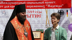3 июня 2019 на территории Свято-Воскресенского кафедрального собора открылся приют для кризисных беременных «Надежда». Торжественное мероприятие началось с молебна, совершенного епископом Бишкекским и Кыргызстанским Даниилом. Затем Его Преосвященство прошел в Дом милосердия и освятил помещение.
