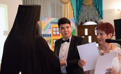 Торжественное мероприятие открыла директор школы Светлана Ивановна Аристова. Затем к выпускникам с приветственным словом и поздравлениями обратился владыка Даниил. Его Преосвященство вручил ребятам аттестаты о среднем образовании и сертификаты по ОРТ. Каждому выпускнику была подарена Библия.