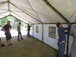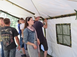 После заезда всех участников иерей Илия Меляков отслужил молебен на начало доброго дела в походном храме, собранном из военной палатки.