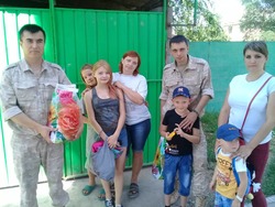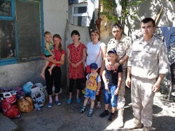 Военнослужащие российской военной авиационной базы Кант, совместно с руководителем социального отдела «Милосердие» при воинском Александро-Невском Храме посетили пять многодетных семей.