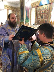 Его Преосвященству сослужили: архимандрит Пётр (Путиёв), настоятель иеромонах Серафим (Шаталин), иеромонах Ираклий (Коростелёв), иерей Георгий Дворовой.