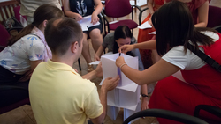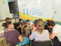 Далее состоялась работа в группах, в ходе которой представители команд смогли выработать свои варианты разрешения проблем в вышеуказанных областях. Завершилась работа презентацией групповых наработок. По вопросу создания международного православного сообщества, наибольшую поддержку получили «Вконтакте», «Инстаграм» и «Фейсбук». По вопросу совместных действий, большинство участников выразили желание заниматься социальной деятельностью (поездки в детские дома и к малообеспеченным людям). А одной из лучших акций к 75-летию победы было признано предложение организовать уход за бесхозными могилами ветеранов войны.