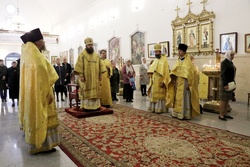 Его Преосвященству сослужили: протоиерей Валентин Никонов, архимандрит Пётр (Путиёв), иерей Евгений Циклаури, иерей Георгий Дворовой.