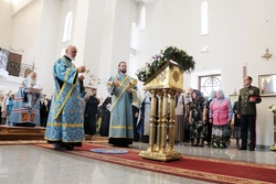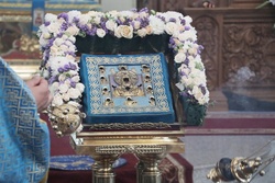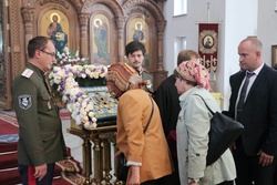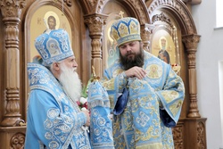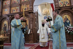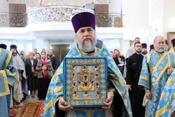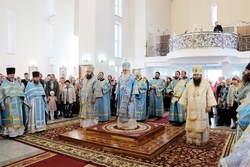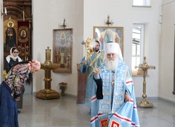 По завершении литургии владыки совершили молебен благоверному князю Александру Невскому. Затем, после обращения митрополита Викентия к пастве с архипастырским словом состоялись молебны перед святым образом Курской Коренной иконы Божией Матери «Знамение».