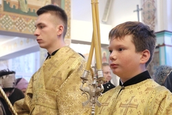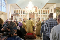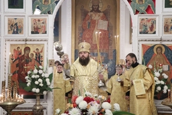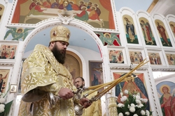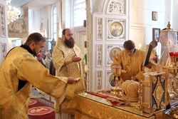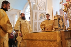 Его Преосвященству сослужили: митрофорный протоиерей Валентин Никонов, архимандрит Петр (Путиёв), иерей Георгий Дворовой, иерей Владимир Кусаинов.