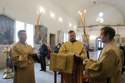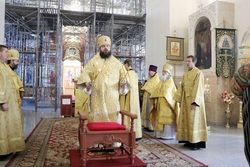 Его Преосвященству сослужили: протоиерей Валентин Никонов, архимандрит Пётр (Путиёв), иерей Георгий Дворовой.