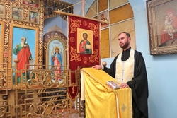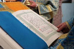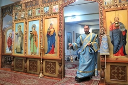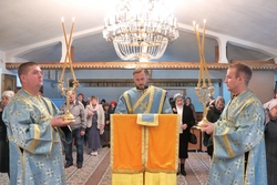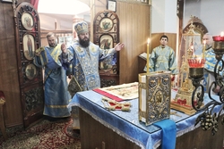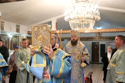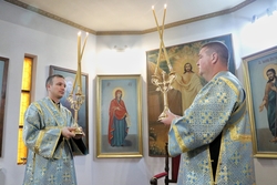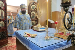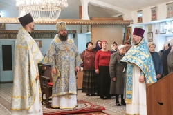 Его Преосвященству сослужили: настоятель Владимирского собора протоиерей Алексий Зайцев, иерей Георгий Дворовой, иерей Александр Аношкин.