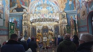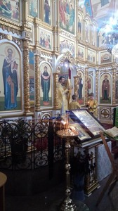 Литургия прошла на одном дыхании. Отцу Александру Аношкину, которого совсем недавно назначили в этот храм, сослужили о. Олег и о. Илий. Радостное и праздничное его настроение богослужения передавалось всем присутствующим. Храм наполнился молодыми ребятам-лётчиками и было отрадно видеть, что мужская половина молящихся здесь преобладает.
