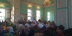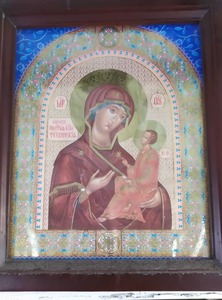Последний по программе храм в честь Тихвинской иконы Пресвятой Богородицы в с. Аламедин. Это очень маленький домик, приспособленный к службам. Настолько маленький, что мы не раз проезжая мимо не замечали его среди стоящих рядом особняков. И все паломники дружно всматривались в окно, чтобы увидеть маленькую маковку храма и не проскочить мимо. Настоятель храма отец Николай встретил нас с радостью, такое количество верующих бывает крайне редко. Вся группа паломников даже не вместилась в помещение храма. Из-за того, что храма почти не видно, немногие православные, которые ещё живут в этом селе, не знают что у них есть храм. С этим фактом паломники встречались лично и со скорбью озвучили это батюшке. Смиренный отец Николай старается не унывать, верит в промысел Божий и надеется, что Господь всё управит и со временем здесь будет украшать всю округу красивый православный храм.