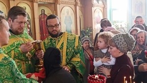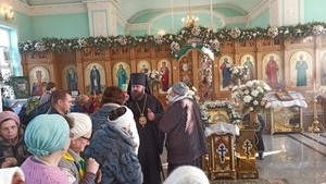 Праздничную службу вел правящий архиерей владыка Даниил. Паломники особенно любят молиться на таких службах. Чувствуется сразу единство, нерушимая Церковь, которую врата ад не одолеет. Батюшка Андрей Борисенко, настоятель храма святого праведного Иоанна Кронштадтского, светился радостью и казалось что он знает каждого присутствующего лично, в то время как храм едва вмещал в себя всех присутствующих. И это не удивительно, потому что отец Андрей имеет свой особенный дар строить храмы. И этот храм, величественный, красивый и ухоженный (уже третий по счету) он построил с нуля достаточно быстро с Божьей помощью. Поэтому батюшку знают и любят очень многие и стараются всегда ему помогать.