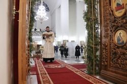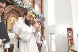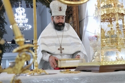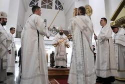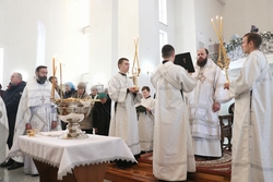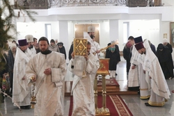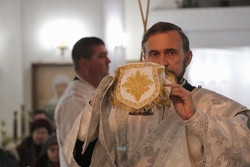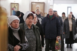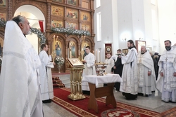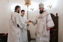 Его Преосвященству сослужили: архимандрит Пётр (Путиёв), протоиерей Алексей Зайцев, иерей Георгий Дворовой, иерей Николай Пелых.