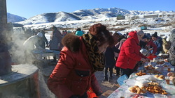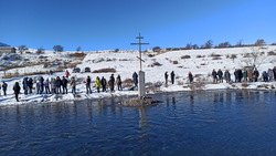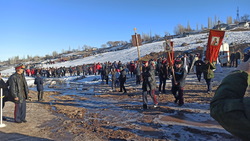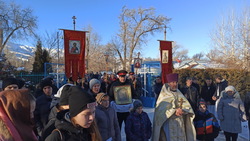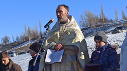 После праздничной Литургии все молящиеся крестным ходом двинулись к Иордани, местной речке Кара-Балтинка, которая протекает среди гор в 1,5 км от села.
