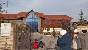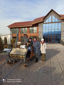 2 февраля, после службы, группа паломников выехала на горнолыжную базу «Кашка Суу».. Выезжая за город в сторону гор, было видно, как много людей проводит выходные дни на свежем воздухе. Поднимаясь по крутому склону, наш бус остановился в пробке. Как оказалось, целая цепочка машин не могла подняться по скользкой и узкой дороге и только джипы с завидной лёгкостью быстро проезжали мимо нас. Немного подождав, мы поняли, что подняться на «Кашка Суу» не получится, но мы уже доехали до базы отдыха «Политех», где есть возможность покататься на санках, на ледянках и на коньках. Все решили остановиться здесь.