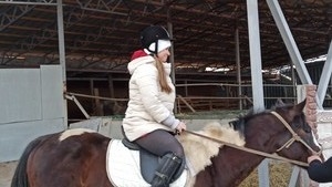 Дальше по программе группа посетила комплекс отдыха «Гайд-Парк». Здесь расположена конная ферма, где можно покататься на лошади самостоятельно или с инструктором, детки могут покататься на пони, можно и научиться профессиональной верховой езде. Наша активная и жизнерадостная Наталья не упустила такой возможности. Инструктор, увидев маленькую хрупкую девушку, выбрал для неё более спокойную лошадь. Проехав на ней тихонечко несколько десятков метров, Наташе захотелось ехать быстрее. Но лошадь, видимо привыкшая к такому ходу, не хотела идти быстрее. Тогда инструктор дал Наташе плётку и объяснил, как можно её поторопить. После небольшого сопротивления лошадь всё-таки пошла быстрее. Наташа, человек горячий, войдя в раж и захотев уже было поскакать рысью или галопом, вскоре передумала и уступила своё время катания детям во Славу Божию.