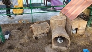 Остальная часть группы прогулялись по мини-зоопарку, где живут козлики, кролики и лошади разной породы. Особенно всем понравился очень высокий красивый жеребец, но с характером, не всем позволял себя погладить.