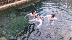 На следующий день была экскурсия в Гефсиманию, на пути стоит Церковь Всех Наций, приложились к камню, где молился Христос накануне своей казни. Затем прошли в церковь Успения Богоматери, приложились к иконе Иерусалимской, в приделе прав.Иосифа обручника и родителей Богородицы Иоакима и Анны. Побывали в прекрасную русскую Церковь св. Марии Магдалины, где с огромным волнением приложились к гробнице прпм. Елизаветы и муч. Варвары. Оттуда пешком пошли в старый город Иерусалим через Львиные ворота. Паломникам показали место рождества Пресвятой Богородицы, там приложились к иконам богоотцев Иоакима и Анны, посетили Овечью купель «Вифезда». Затем пришли к месту, которое называется «Претория». Отсюда начинается скорбный крестный путь Спасителя. Со скорбью, в полном молчании мы проходили этот путь. Сердце содрогается, видя Спасителя в тюрьме, в узах. По скорбному пути паломники шли с крестами, останавливаясь там, где Господь останавливался и падал затем. Подошли к храму св. Александра Невского, к порогу Судных врат, через которые Спаситель был выведен на Голгофу. Особенно здесь чувствуется Любовь Господа к нам недостойным. На следующий день поехали в г. Назарет в храм Благовещения. Он расположен над источником Пресвятой Богородицы. В этом месте жили Богоматерь с Иосифом и прошли юные годы Христа Спасителя, помолились, прочитали отрывок из Евангелия священнослужители из паломнической группы, пропели акафист Пресвятой Богородице, набрали святой воды из источника и поехали в Кану Галилейскую. Там зашли в храм на месте дома апостола Симона Кананита, где Спаситель совершил первое чудо – претворил воду в вино. Оттуда поехали на гору Фавор в греческий православный храм Преображения, там также прочитали Евангелие, пропели тропарь, кондак и приложились к особо почитаемому греками образу Пресвятой Богородицы «Неувядаемый цвет» на газетном листе в кивоте. Там же на горе находятся три кущи, все как в Евангелии. Затем прибыли в подворье Русской Духовной Миссии во имя св. Равноапостольной Марии Магдалины в Магдале. Многие паломники искупались в св. теплых источниках, а в одном набрали святой воды, которая помогает при болезни глаз. Там же стоит часовня св. пророка Ильи. Очень много Евангельских событий с участием Господа нашего было связано с Галилейским озером. Паломники увидели неспокойным – сильный ветер поднимал огромные волны. Немного продрогнув, поехали в православный греческий храм Двенадцати апостолов. Там на огороженной территории ходят павлины и куры, везде цветут дивные цветы, пальмы и кактусы. На следующий день побывали в монастыре прп. Феодосия Великого. В пещере, около храма нашли свое упокоение святые жены – София, мать пр. Саввы Освященного, Мария, супруга прав.Ксенофонта и Евлогия, мать пр. Феодосия Великого. При обители была погребена русская княжна прп. Евфросинья Полоцкая, потом её мощи были перевезены в Белоруссию. Затем посетили лавру пр. Саввы Освященного, где подвизался и нашел упокоения прп. Иоанна Дамаскин. В этот монастырь женщинам нельзя заходить. Спустившись с горы, посетили Поле Пастушков, на котором в Рождественскую ночь пастухи услышали ангельское славословие: «Слава в Вышних Богу». В пещерном храме погребены пастухи и монахи, пострадавшие при нашествии персов. Далее состоялась поездка в Вифлеем, в храм Рожде