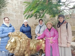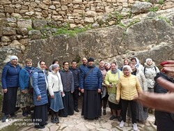 На следующий день поехали в Фаранскую лавру прп. Харитона Исповедника сначала вверх на автобусе, а дальше пешком. Легко и радостно поднимались паломники к обители, которую основал прп.Харитон. Внизу в храме св. Николая Чудотворца приложились к старинным иконам. На самом вверху в пещерном храме в честь пр. Харитона Исповедника к нашему изумлению и радости мы увидели икону с частичкой мощей прп. исповедника Ираклия Иссык-Кульского, почувствовали восторг, радость, единение и любовь Господа к нам. Последним местом пребывания была Елеонская гора, место, на котором Иисус Христос вознесся на небо. Там помолившись, приложились к отпечатку стопы Господа. Зашли в Русский Вознесенский монастырь в прекрасный собор Вознесения Христова и приложились к камню, где стояла Пресвятая Богородица во время Вознесения Господа нашего. За храмом, в часовне помолились и приложились к месту первого и второго обретения честной главы Иоанна Предтечи. Узнали, что в монастыре похоронен архим. Антонин Капустин, много потрудившийся для того, чтобы на Святой земле была Русская Миссия, территория и возможность ее посещения. Посетили панорамное место с видом на Иерусалим. По Божией милости, к великой радости у паломников появилась еще одна возможность посетить Храм Гроба Господня. А затем пришел час расставания со Святой Землей. За это время паломники сплотились, стали как бы одной семьей.
