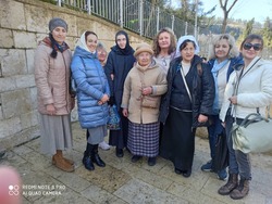 В начале февраля паломники совершили поездку на Святую землю. Группу кыргызстанцев присоединили к сборной группе паломников из России, Украины. Всего 58 человек. Остановились в живописном селении Эйн-Карем в 9км к югу от старого Иерусалима в русском Горненском монастыре. В этом месте находился дом священника Захарии и прав. Елисаветы - родителей святого Иоанна Предтечи. Сюда из Назарета поспешила Пресвятая Дева к родственнице Елисавете и пробыла здесь 3 месяца. В Горнем, событие это празднуют 12 апреля, и называется этот праздник «Целование». На следующий день до приезда основной группы паломники побывали на литургии в храме Казанской иконы Божией Матери, в котором находится чудотворный образ Казанской Пресвятой Богородицы, благодаря которому в 1914 г. остановилась эпидемия холеры в монастыре. После экскурсии по Горненскому, паломники стали приняли участие в ночной Литургии у Гроба Господня. Все приложились к Гробу Господа и Его Славному Воскресению. Каждый по своему испытал глубокие переживания от встречи со Христом. На литургии все причастились Святых Христовых Таин.