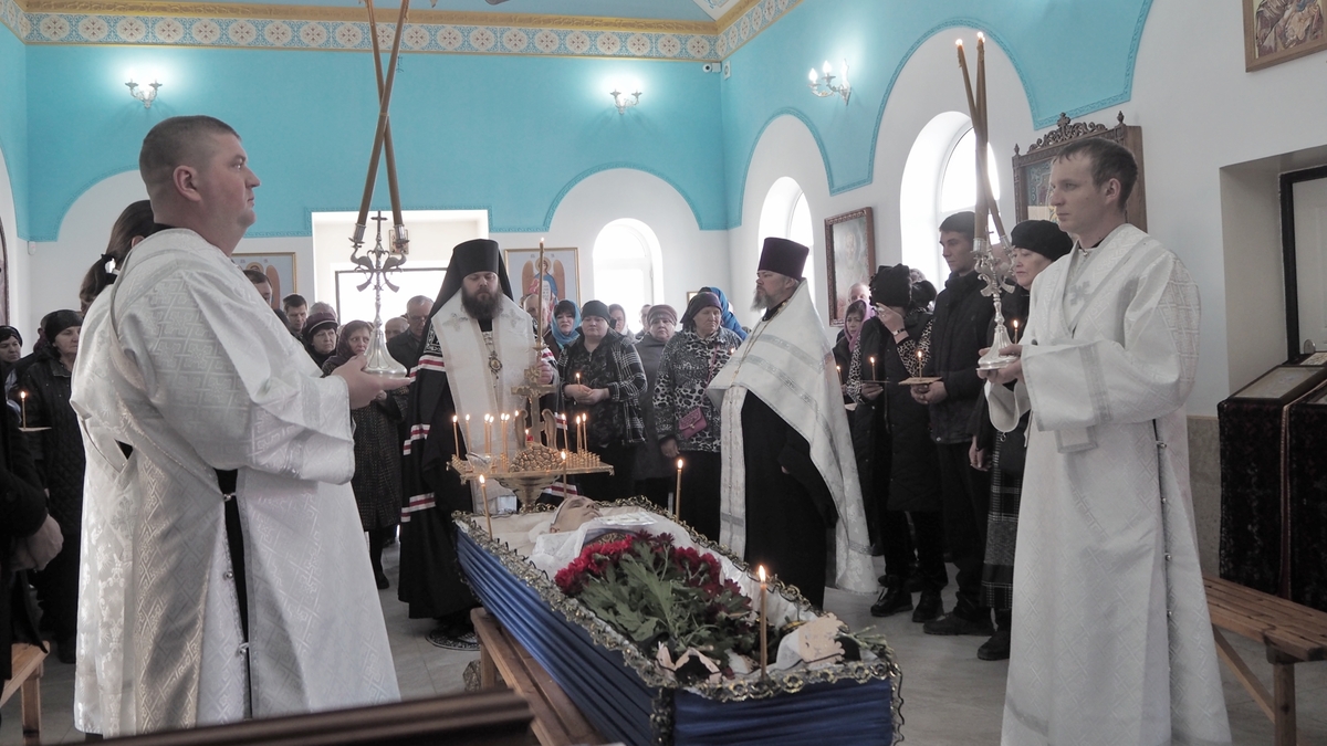 Его Преосвященство принял участие в церемонии прощания с погибшим на кладбище. Владыку сопровождали настоятель храма в селе Сосновка, протоиерей Александр Мезенцев и клирик Свято-Воскресенского кафедрального собора иерей Георгий Дворовой.
