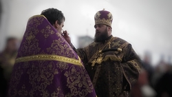 Владыке сослужили: архимандрит Пётр (Путиёв), протоиерей Андрей Кунавин, иерей Георгий Дворовой, иерей Владимир Кусаинов, иерей Андрей Андреев.